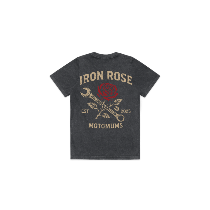 The MotoMums Iron Rose Heavy T-shirt Heavy Faded T-shirt with a relaxed fit and durable finish. Crafted from 100% carded cotton, this 240 GSM heavyweight t-shirt is built for comfort and longevity. It features a garment-dyed finish, relaxed fit, shoulder-to-shoulder taping, and twin-stitched wide neck ribbing for structure that holds up wear after wear.
